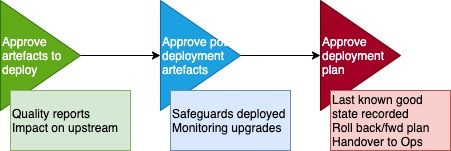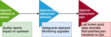 How do we implement stage gates in the deployment process to seek approval to proceed?